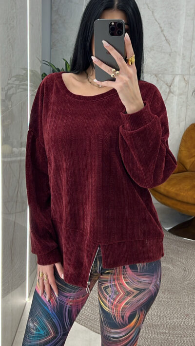 Μπλούζα βελουτέ με λεπτομέρεια φερμουάρ 25931/Μπορντό