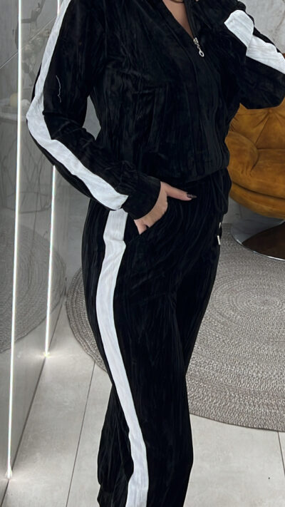 Σετ βελουτέ με λευκή ρίγα RT319/Μαύρο