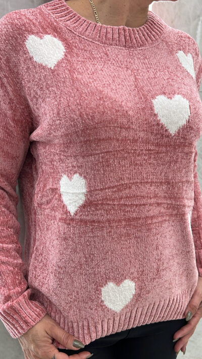 Μπλούζα Σενίλ με Καρδιές 5527/Ροζ