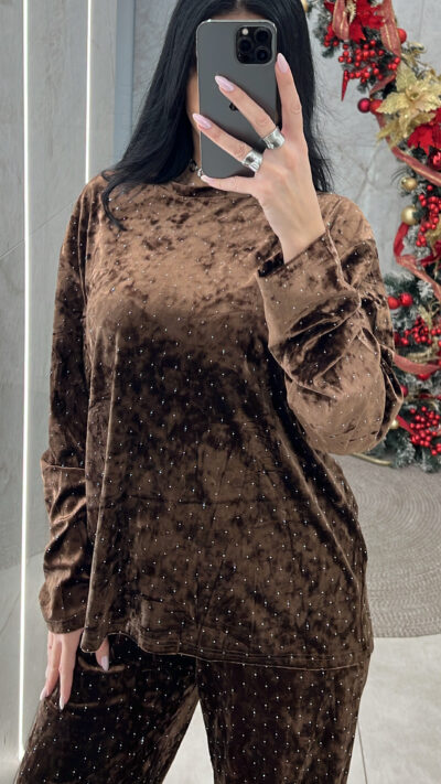 Σετ Φόρμας Βελουτέ 8594/Καφέ