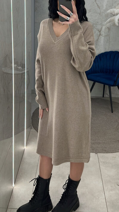 Φόρεμα Πλεκτό Midi 0552/Καφέ