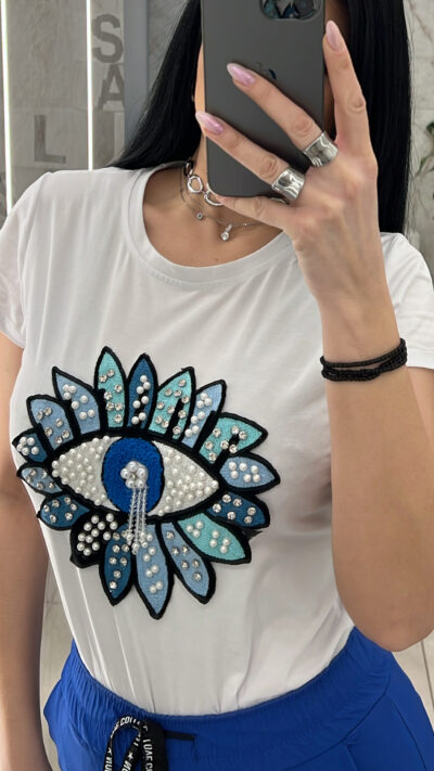 Μπλούζα με χρυσή λεπτομέρεια 14185/Λευκό