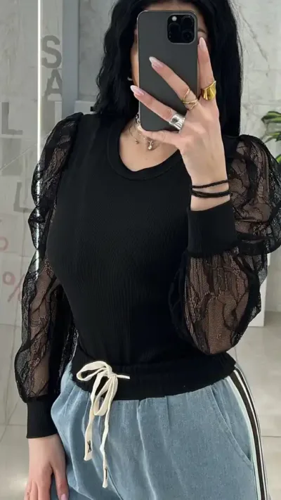 Μπλούζα Με Μανίκι Δαντέλα 22786/Μαύρο