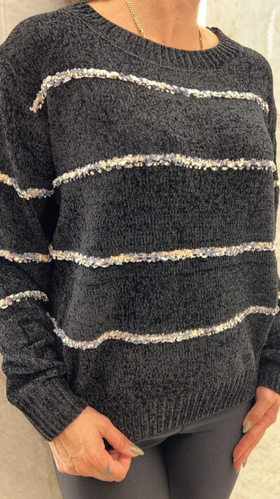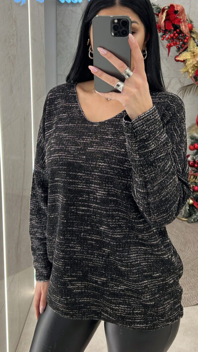 Μπλούζα Πλεκτή με ασημοκλωστή 12159/Μαύρη