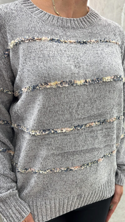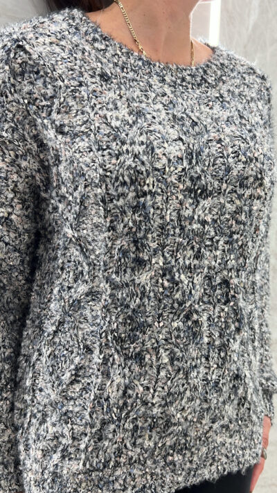 Μπλούζα Πλεκτή με ασημοκλωστή 12159/Γκρι ανοιχτό