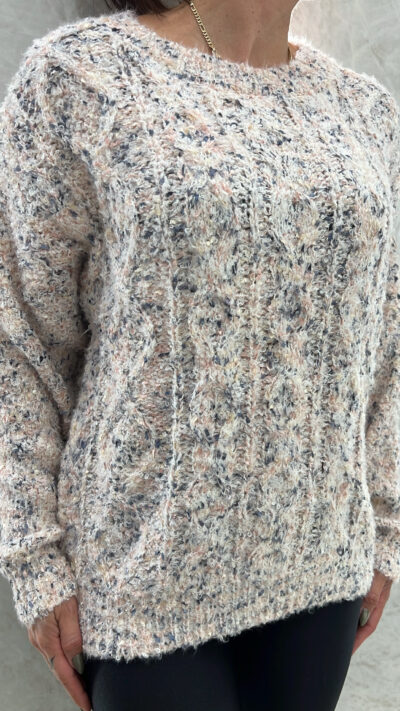 Μπλούζα πλεκτή με ανοίγματα στους ώμους 8096/Εκρού
