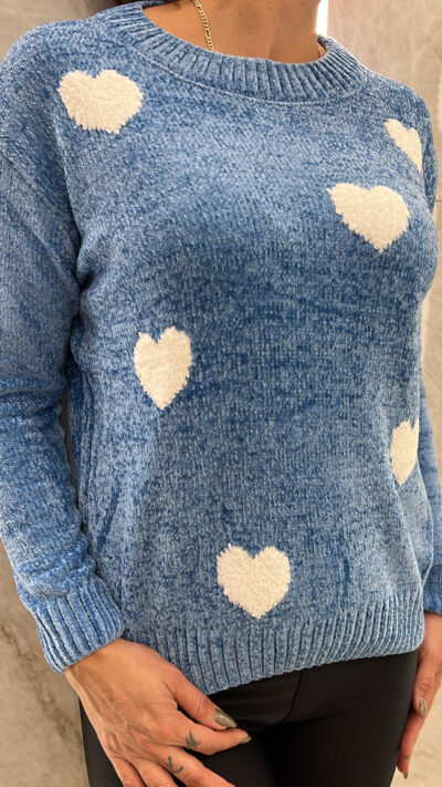 Μπλούζα Σενίλ με Καρδιές 5527/Μπλε