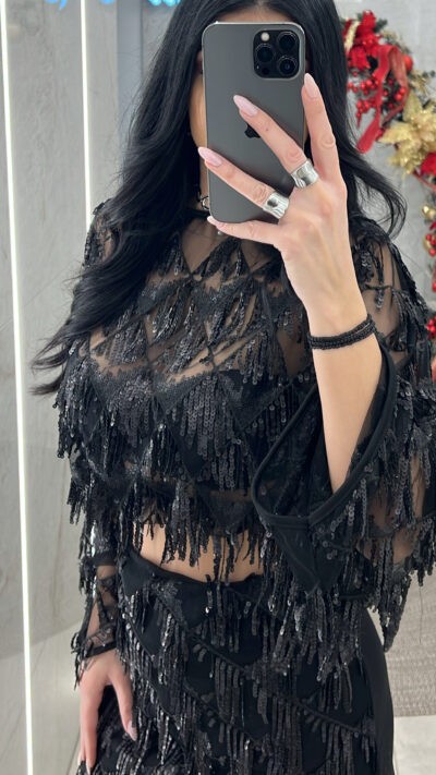 Τοπ Διάφανο με κρόσσια παγιέτας 6253/Μαύρο