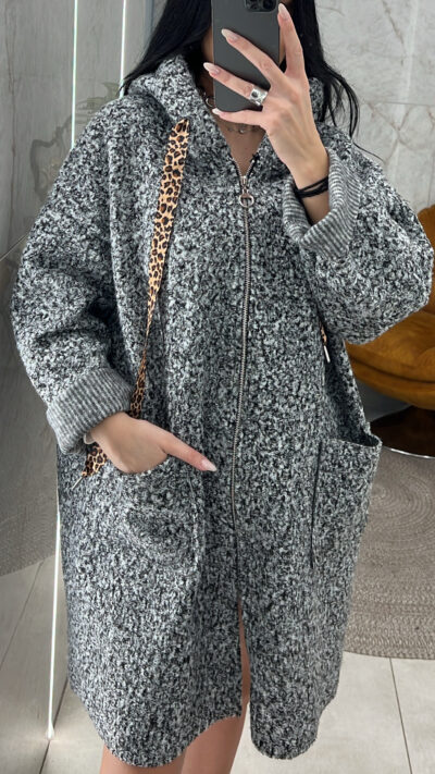 Ζακέτα μοχέρ μακριά 5175/Γκρι
