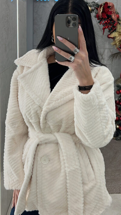 Ζακέτα μοχέρ μακριά 5175/Εκρού