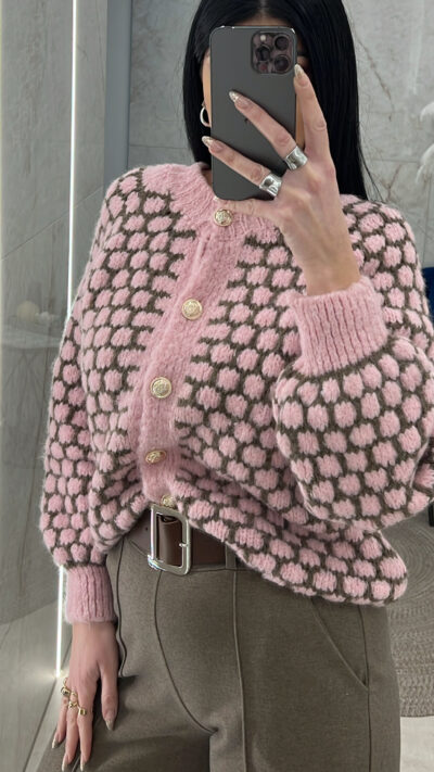 Ζακέτα πλεκτή 319335/Ροζ-Καφέ