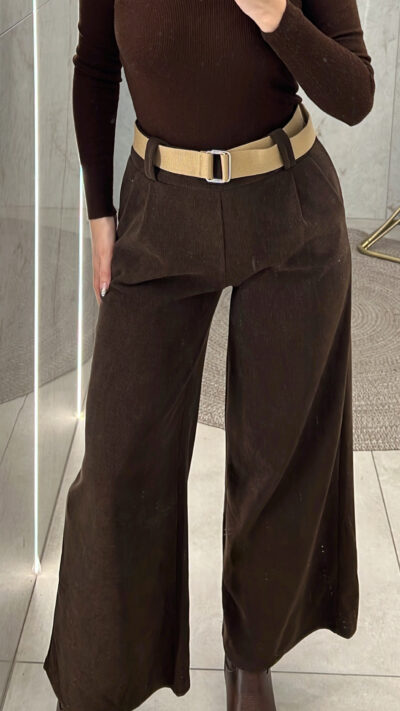 Παντελόνα ψηλόμεση κοτλέ 24557/Καφέ