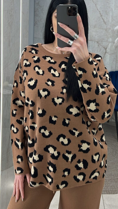 Σετ πλεκτό με λεοπάρ Μπλούζα 25361/Tαμπά