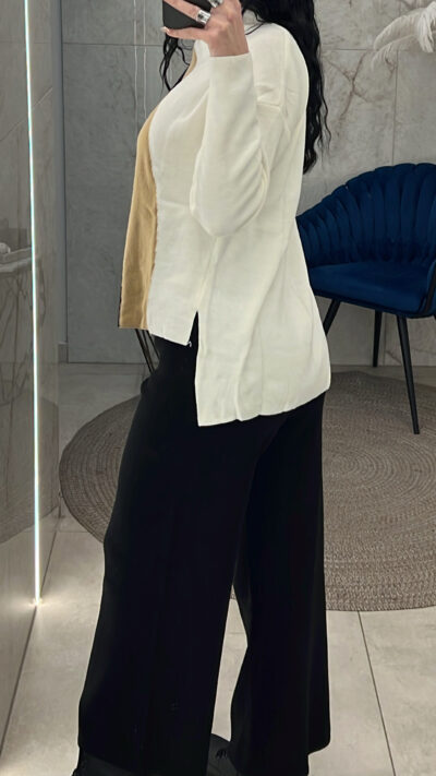 Σετ πλεκτό με λεοπάρ Μπλούζα 25361/Εκρού