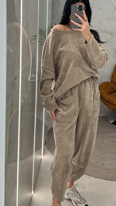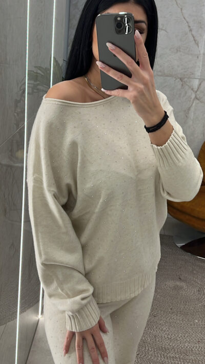 Σετ Πλεκτό Με Παγιέτα D1812AB/Μπεζ