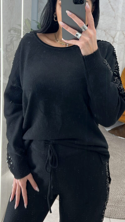 Σετ Πλεκτό με Παγιέτα D1812AB/Μαύρο