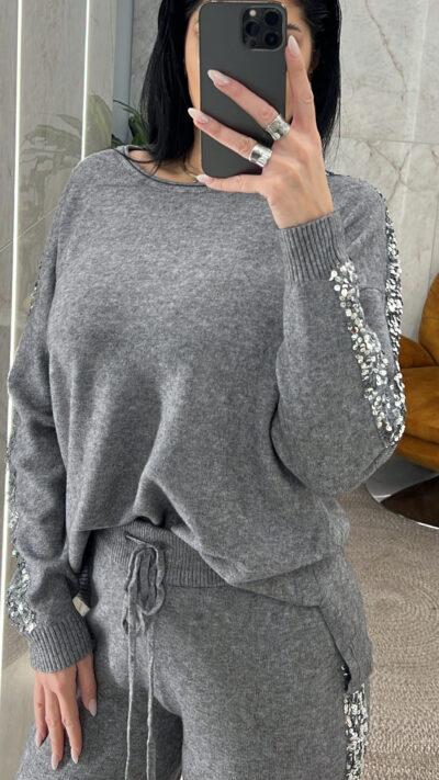 Σετ Πλεκτό Με Παγιέτα D1812AB/Γκρι