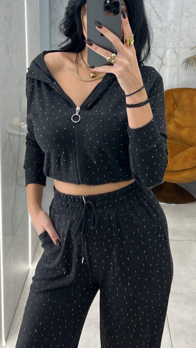Σετ Φόρμας Ζακέτα Strass-6682/Μαύρο