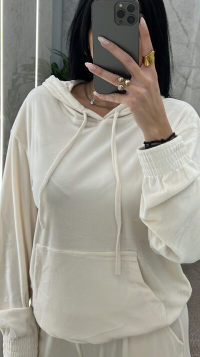 Σετ Φόρμας Βελουτέ με κουκούλα 3672/Εκρού