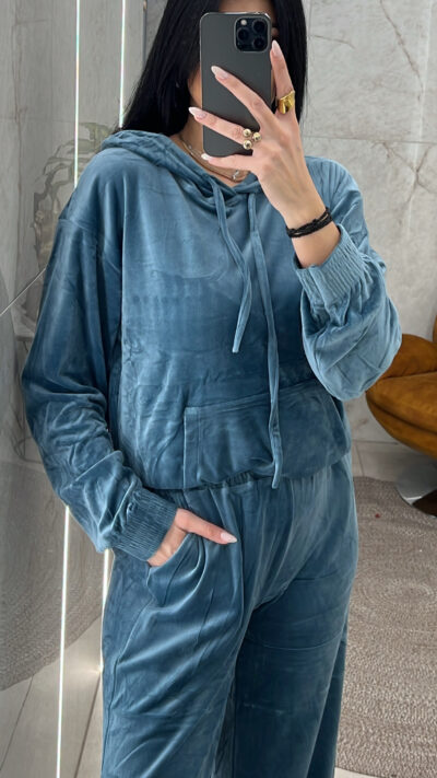 Σετ Φόρμας Βελουτέ με Κουκούλα 3672/Πετρόλ