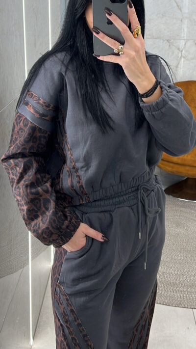 Σετ φόρμας με animal λεπτομέρειες 5077/Γκρι σκούρο