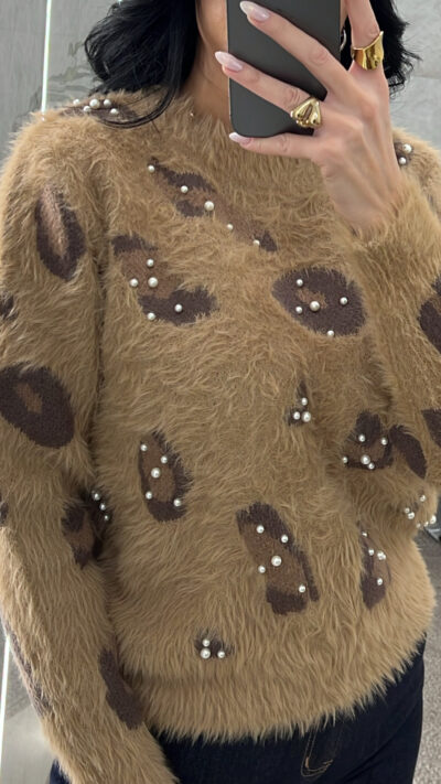 Μάλλινη Μπλούζα 590987/Μπεζ-Καφέ