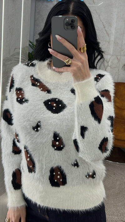 Μάλλινη Μπλούζα 590987/Λευκό-Μαύρο