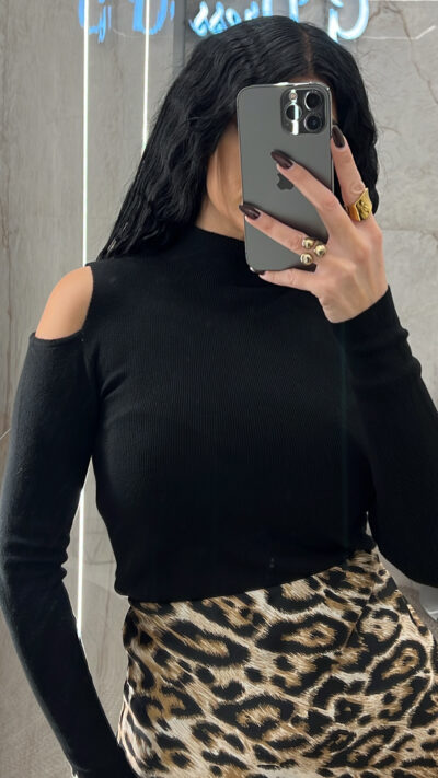 Μπλούζα με ανοίγματα στου ώμους 8096/Μαύρο