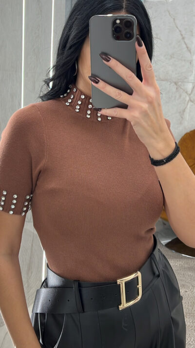 Μπλούζα με άνοιγμα μπροστά 5305/Καφέ