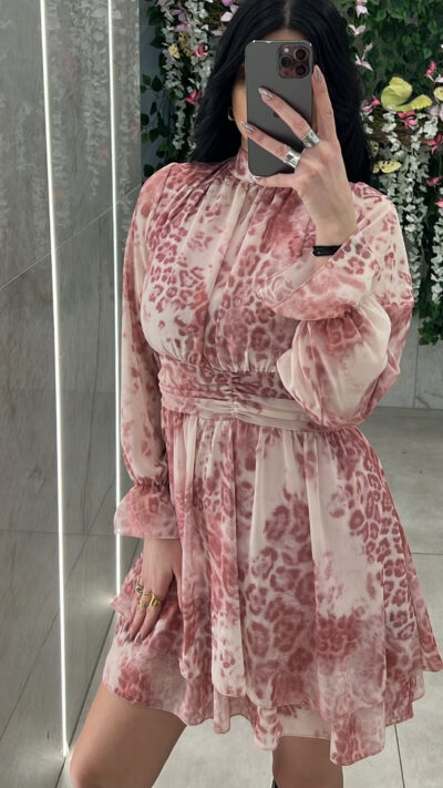 Φόρεμα εμπριμέ κοντό FOR280945/Κόκκινο