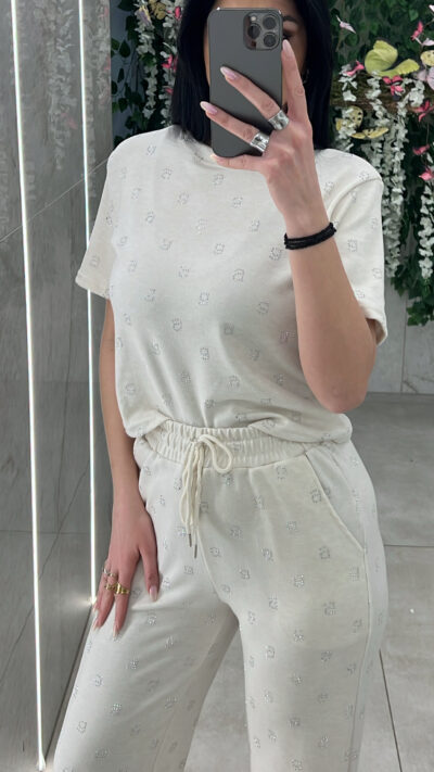 Σετ Πλεκτό Με Στράς HXX02/ Εκρού