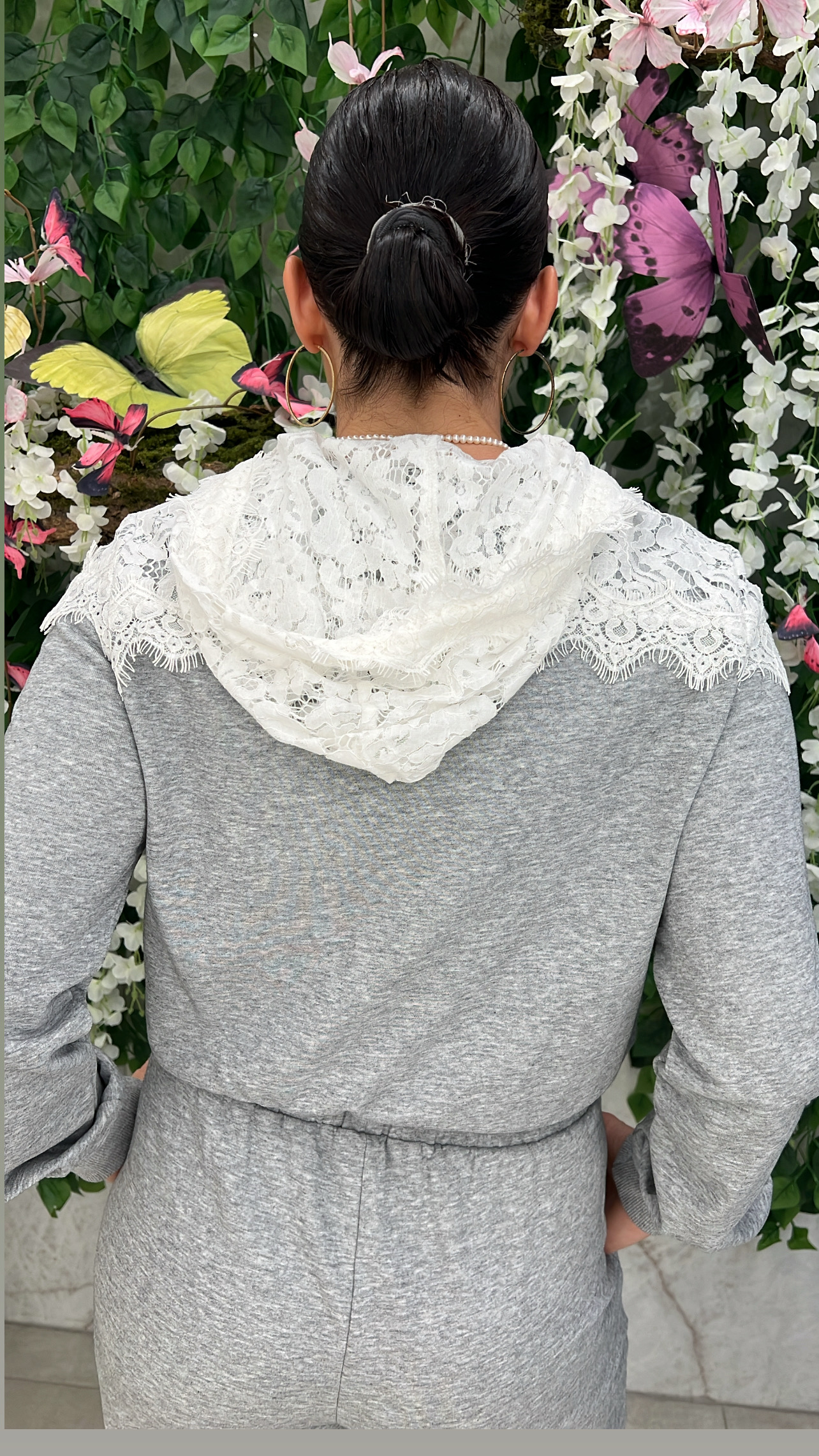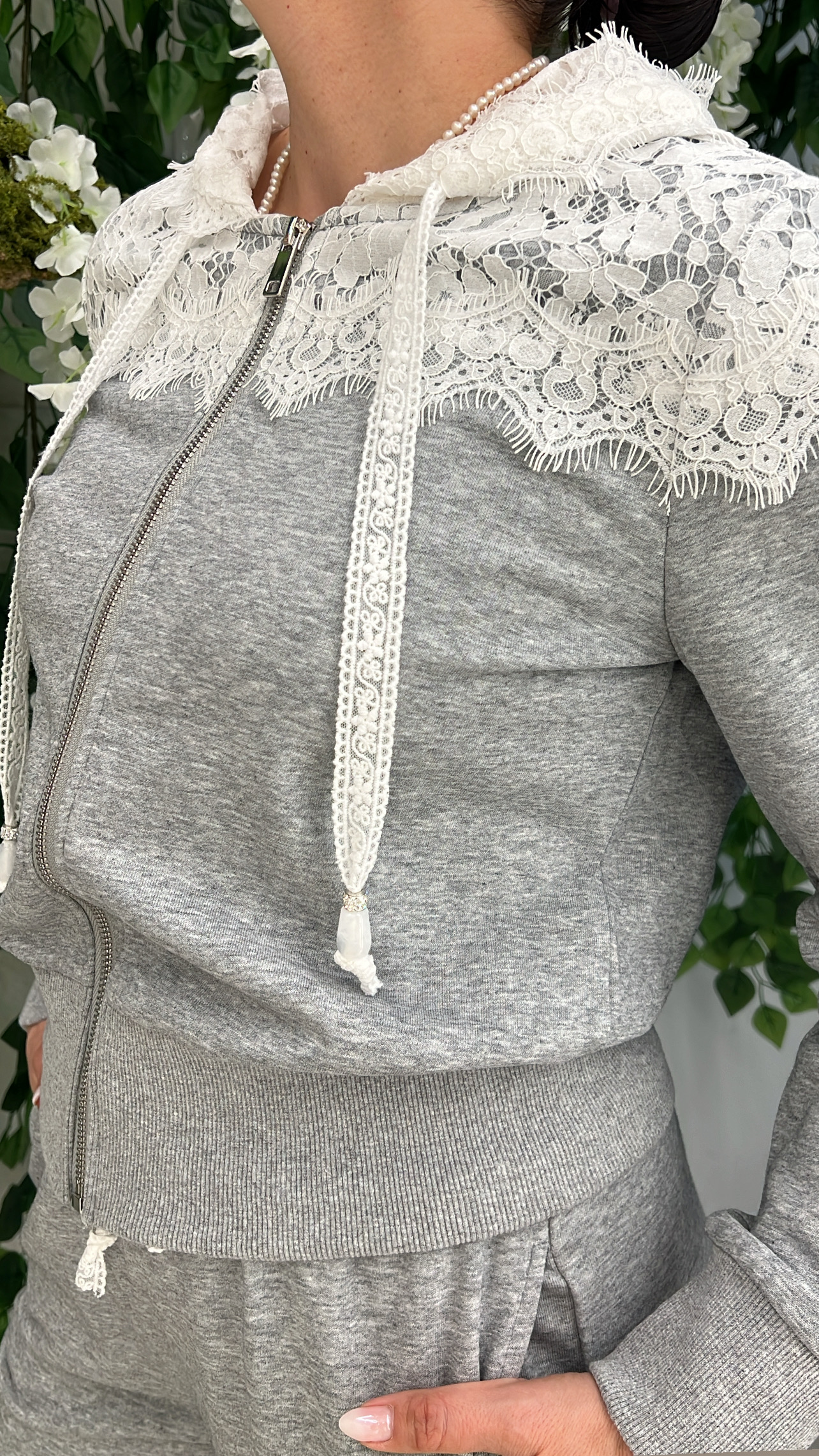 Σετ Φόρμας Με Λεπτομέρειες Δαντελά NS102/ Γκρί