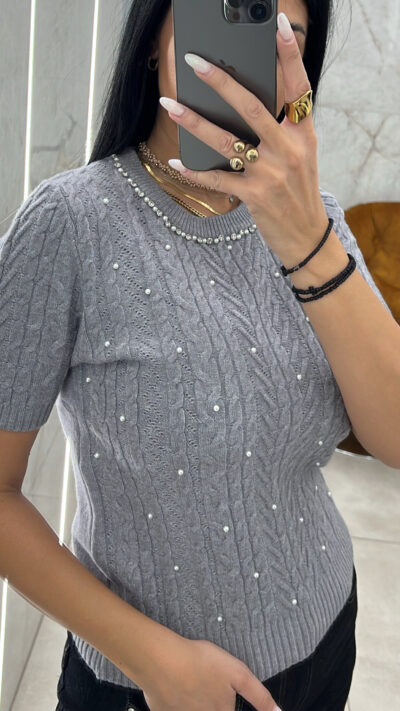 Πλεκτή Μπλούζα Πέρλες/Γκρι