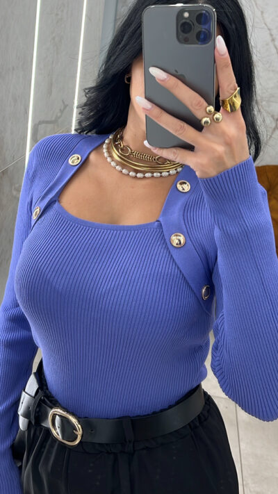 Μπλουζά πλεκτή με λεπτομέρειες χρυσές 52400/Λιλά