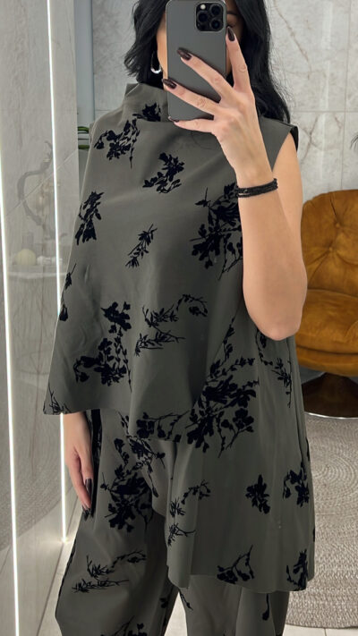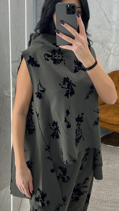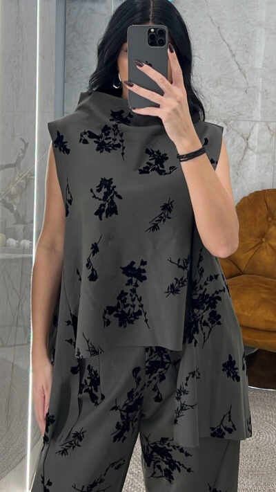 Αμάνικη μπλούζα με ανάγλυφα λουλούδια 9928/Χακί