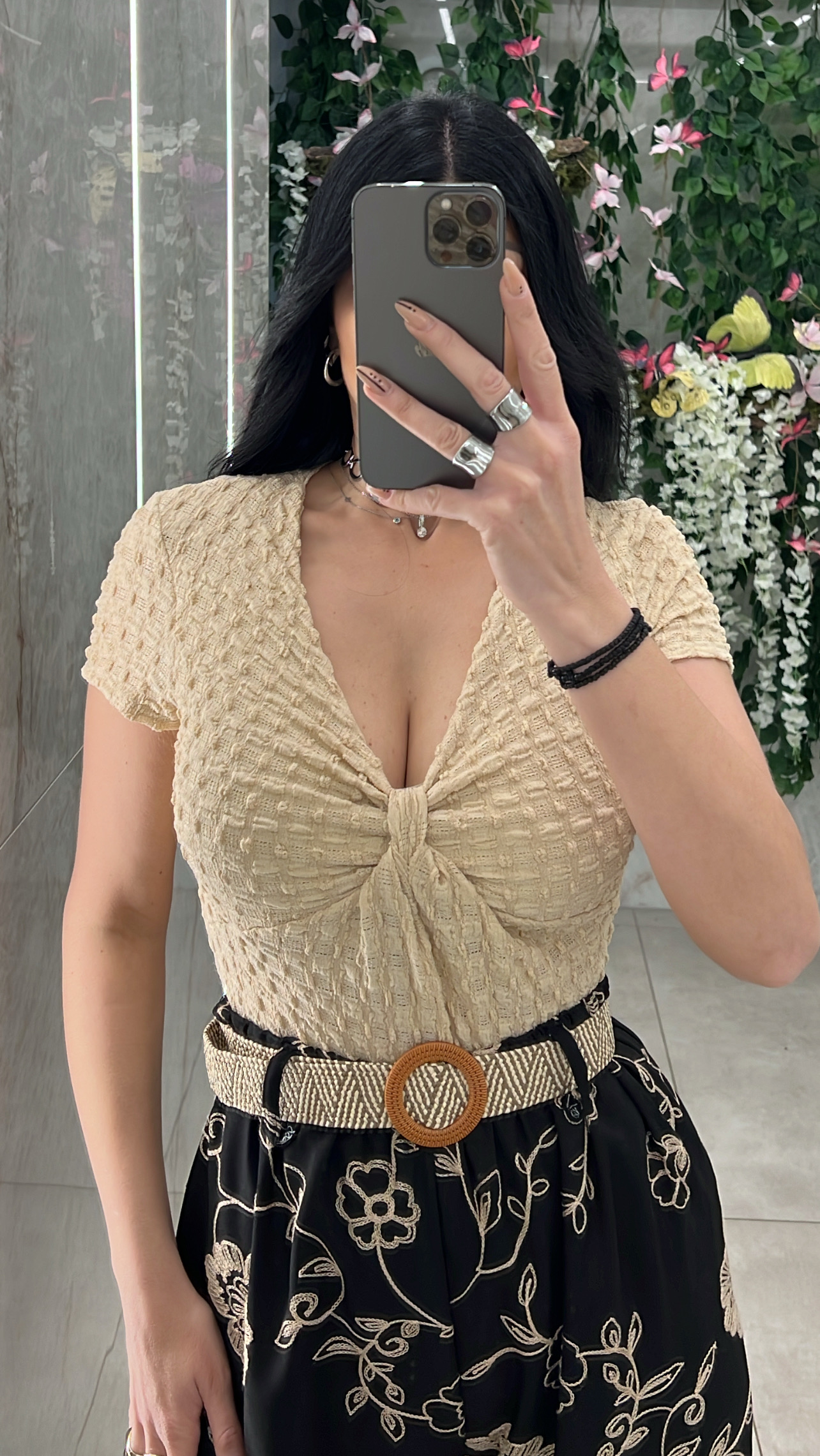 Μπλουζα κοντομάνικι που κανει κομπο στο στηθος .
