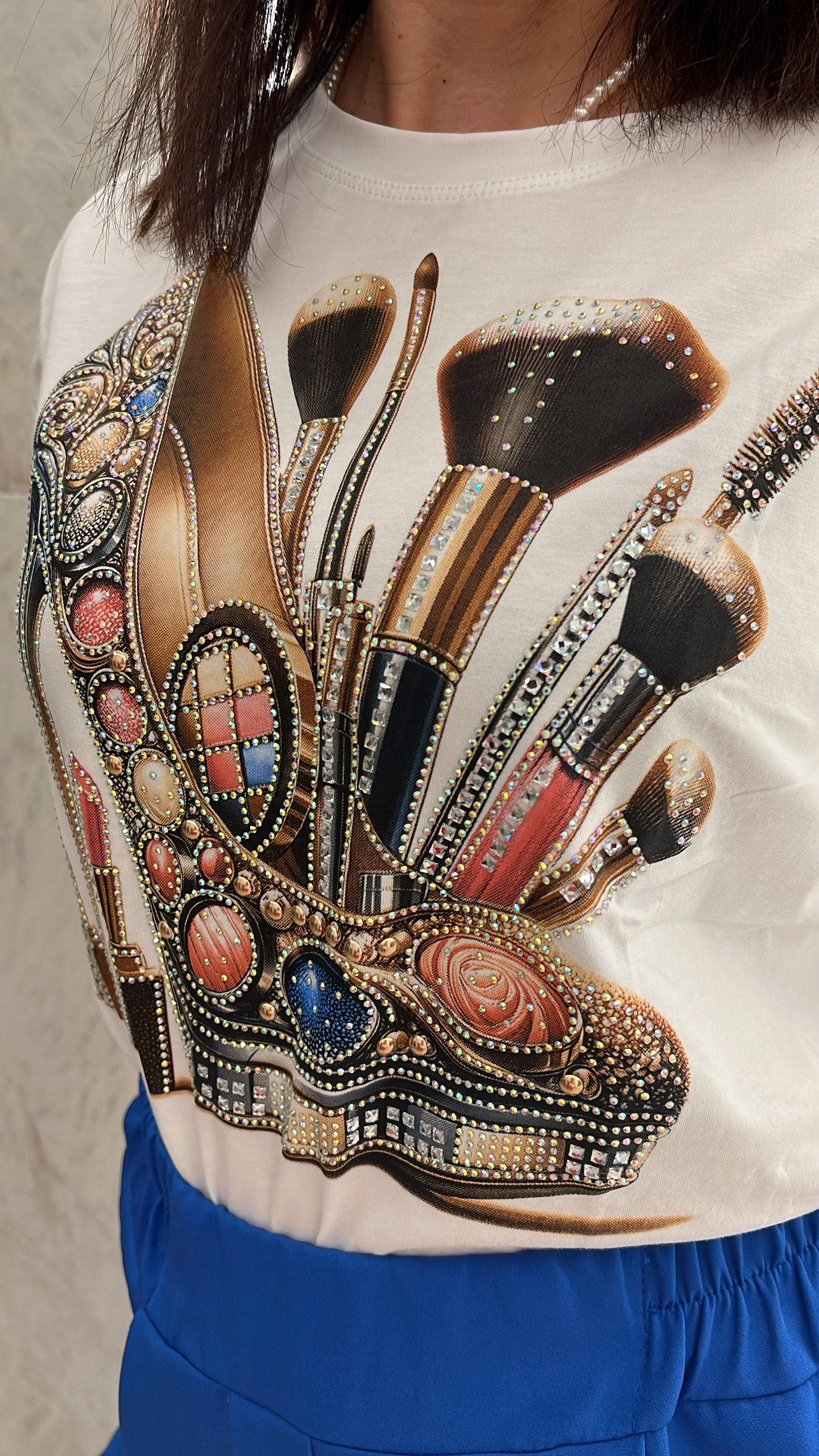 Μπλουζα κοντομάνικι με σταμπα με στρας μπροστά.
