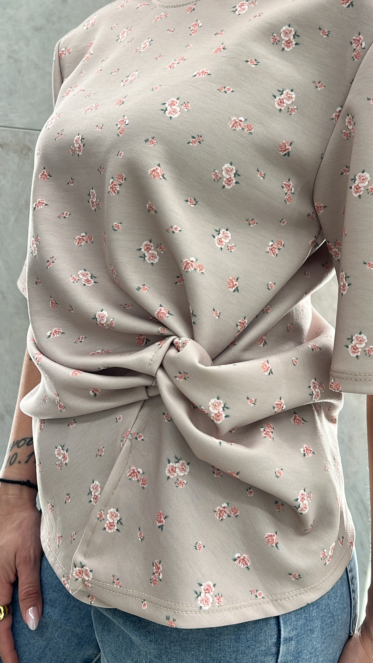 Μπλούζα φλοράλ με βάτες και κόμπο στο πλάι .