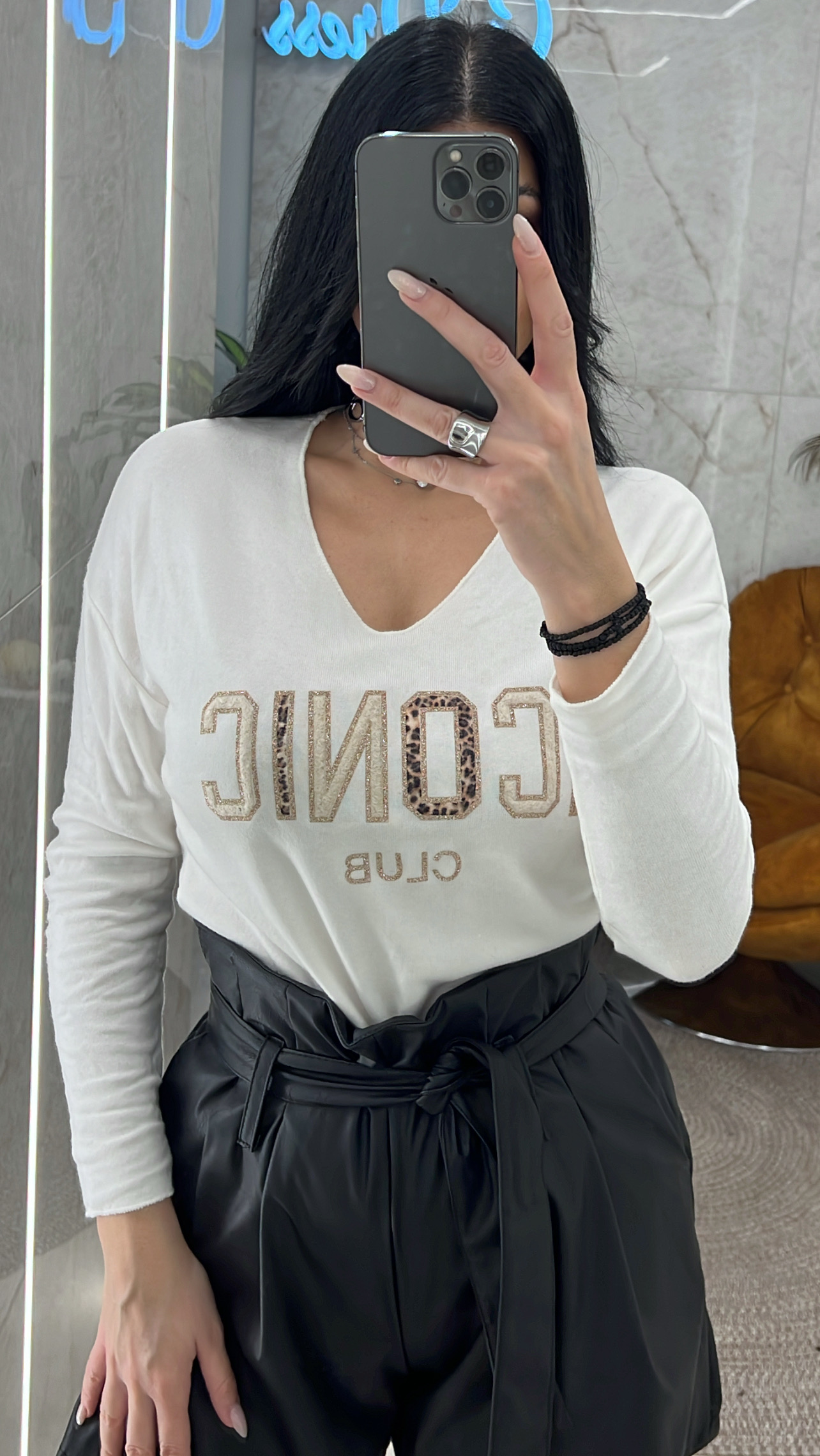 Μπλούζα με στάμπα με λεοπάρ λεπτομέρειες έχει εσωτερικό φλις