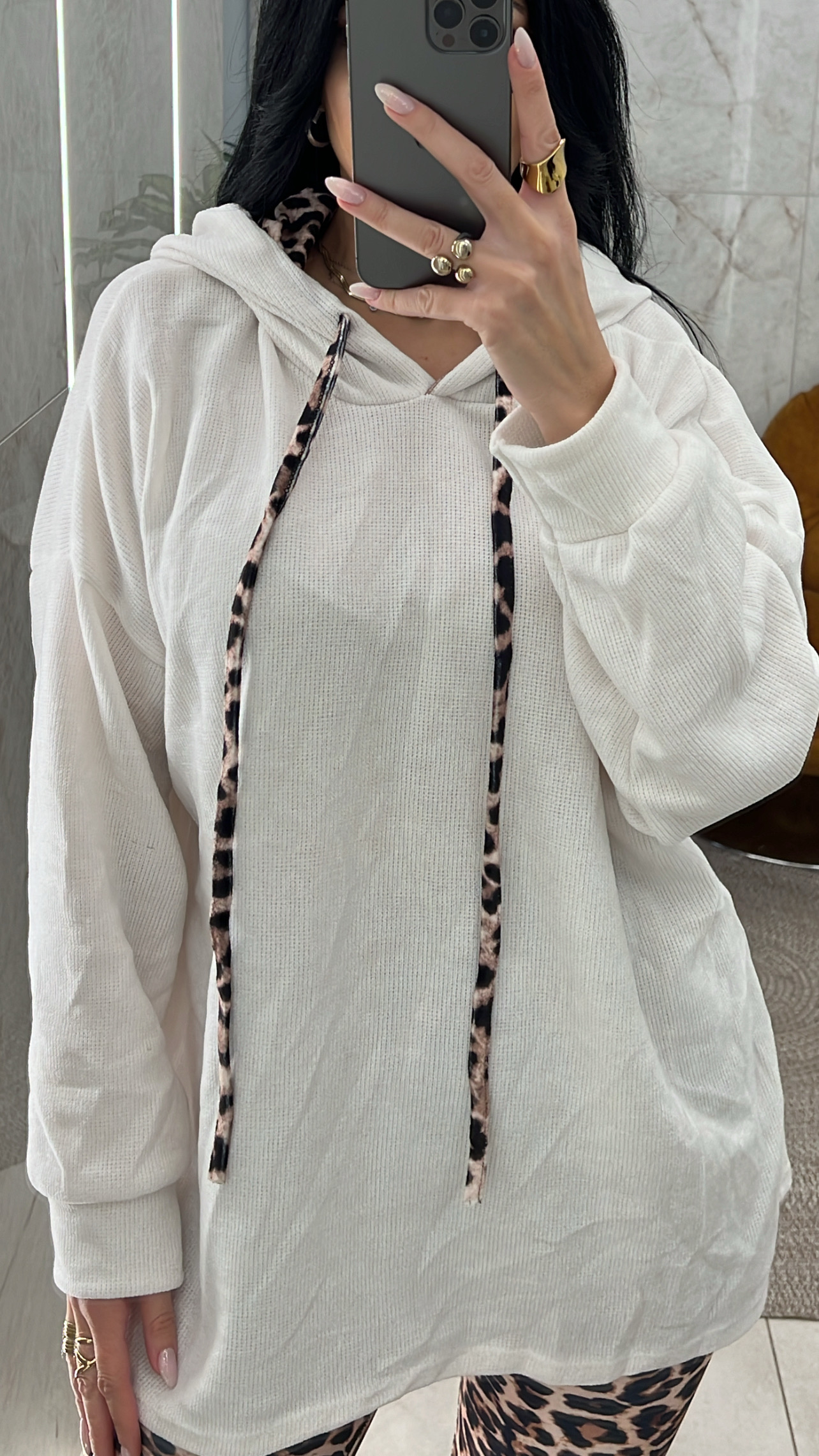 Μπλούζα κοτλέ με κουκούλα και λεοπάρ λεπτομέρειες στη κουκούλα εσωτερικά και κορδόνια
