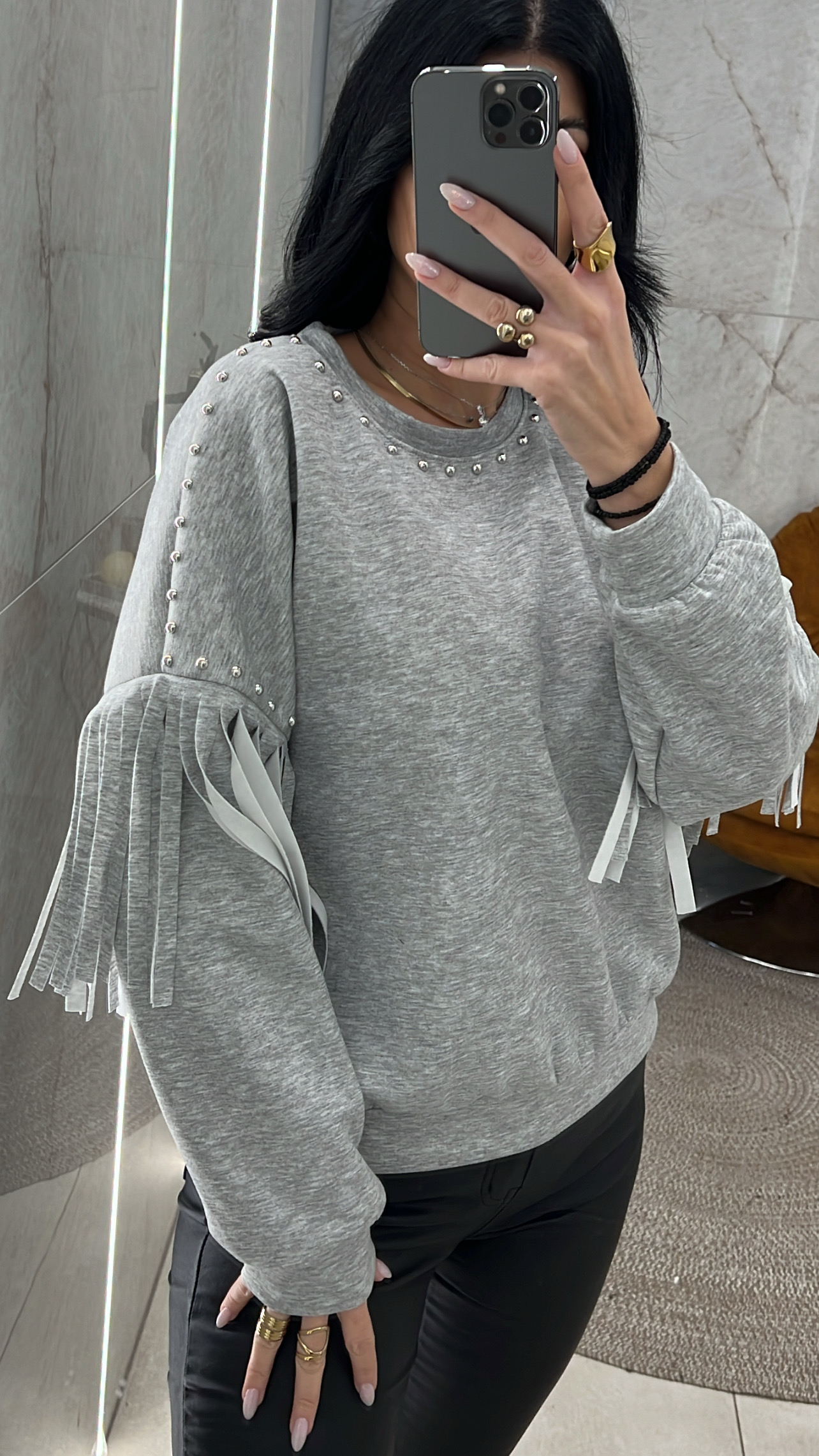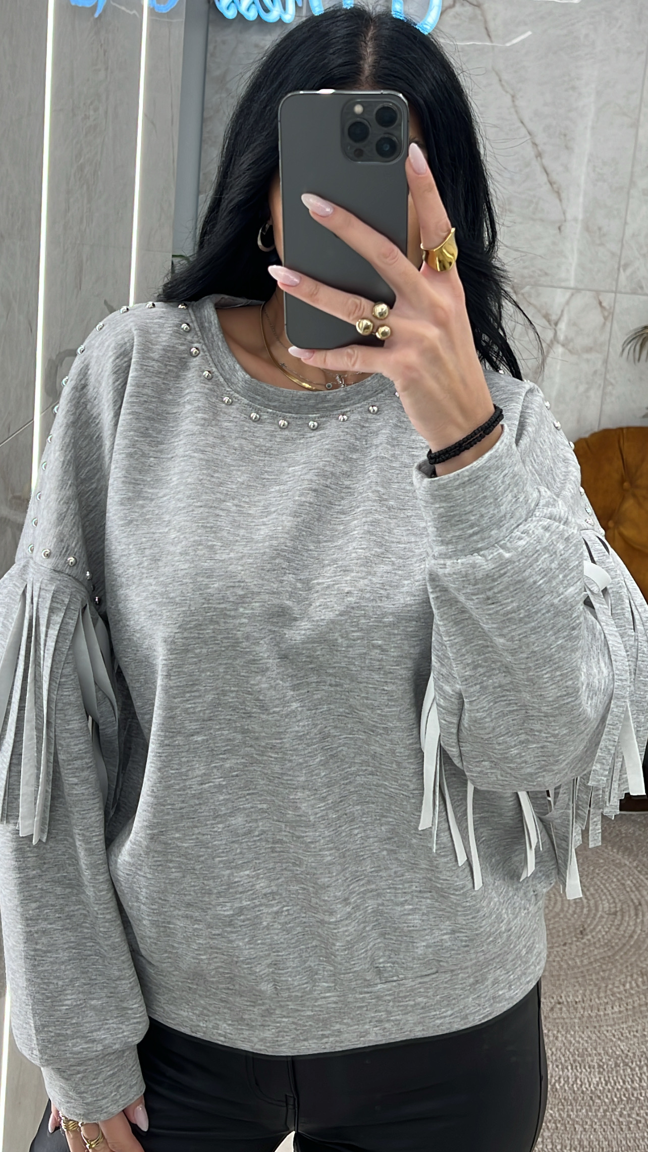 Μπλούζα με κρόσια και τρουκς 21731/Γκρι