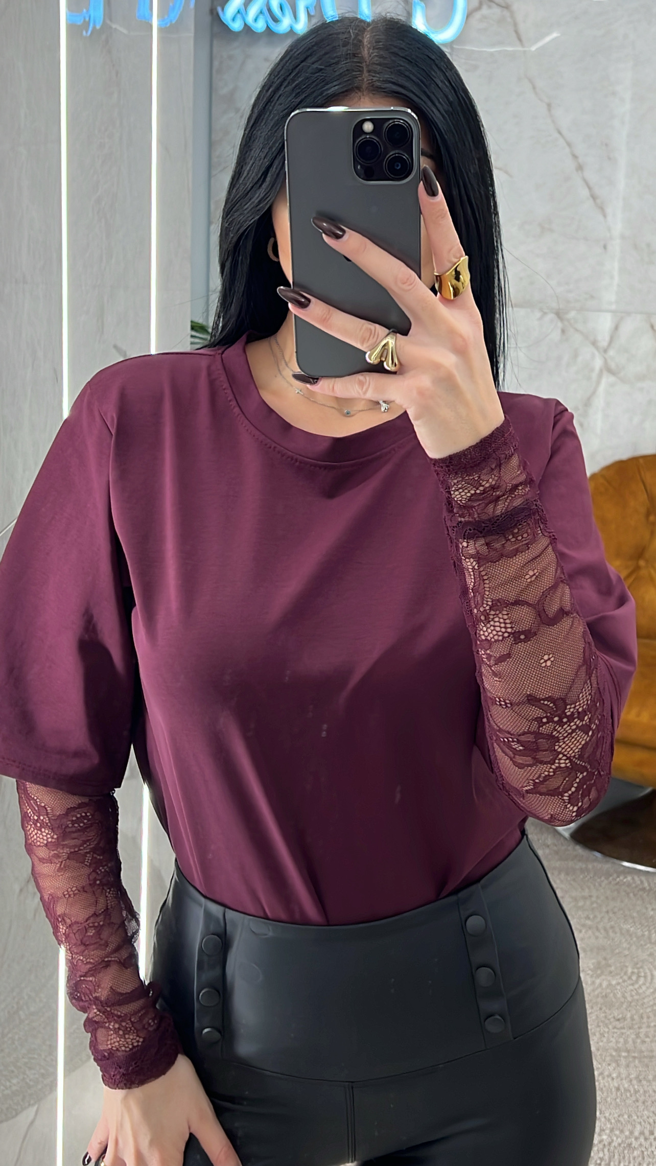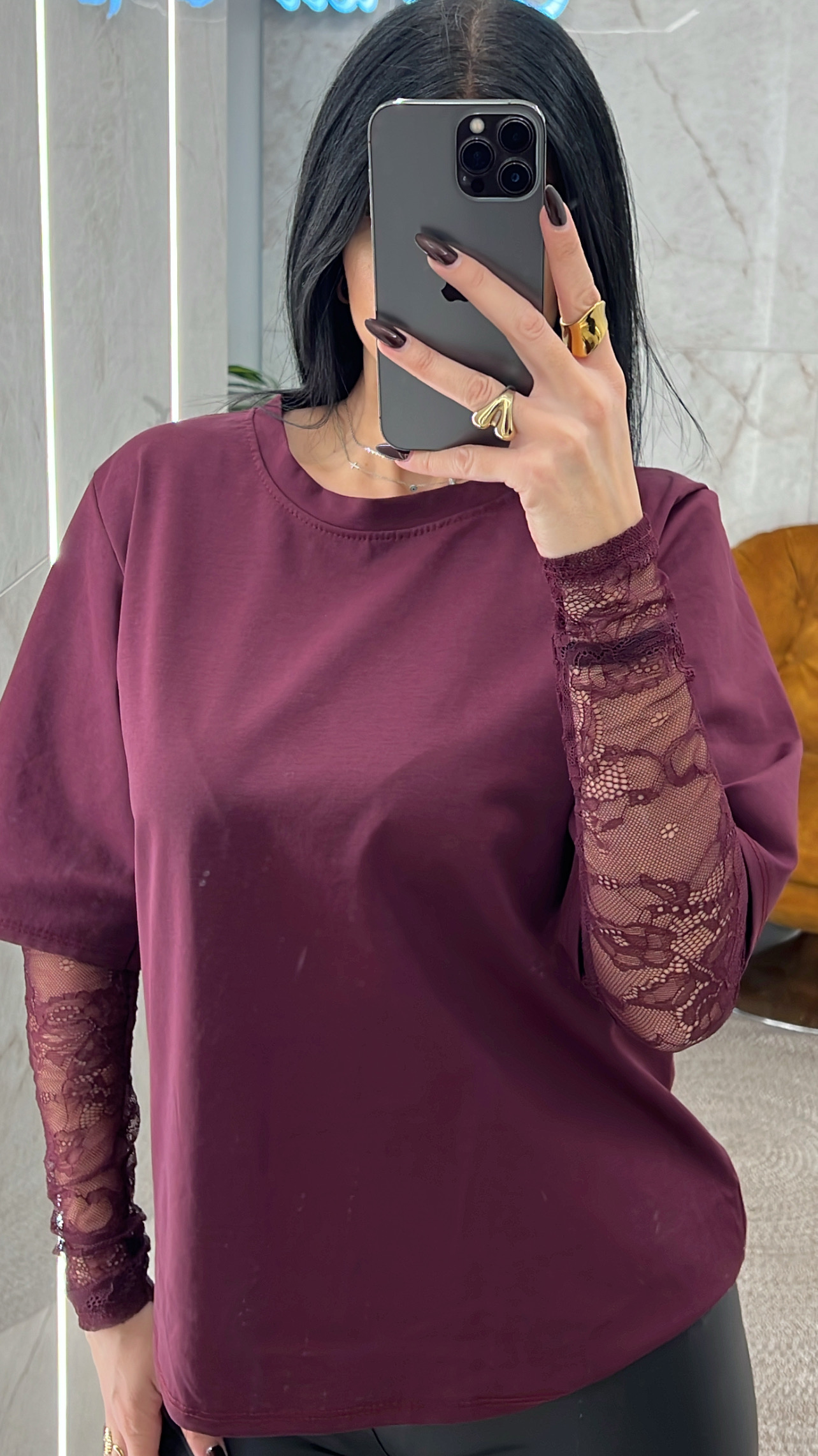 Μπλούζα με μανίκι δαντέλα