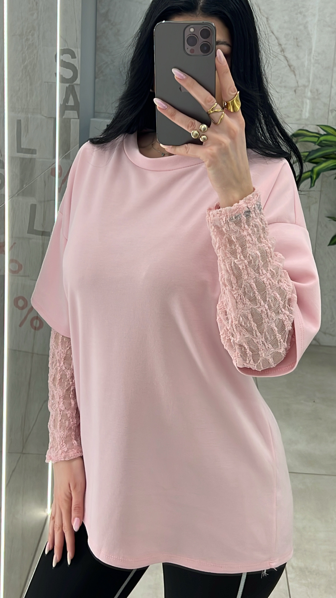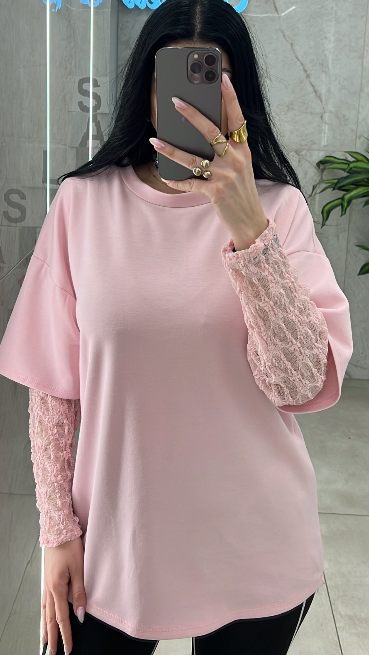 Μπλούζα Με Μανικι Δαντέλα 25695/Ρόζ