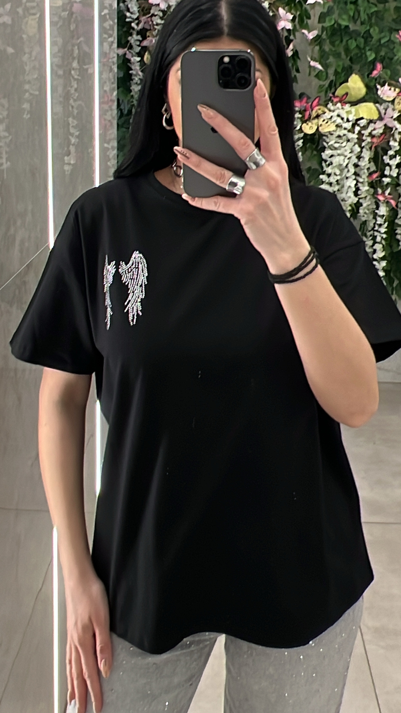 Μπλουζα T-shirt με σχεδιο φτερα απο στρας .