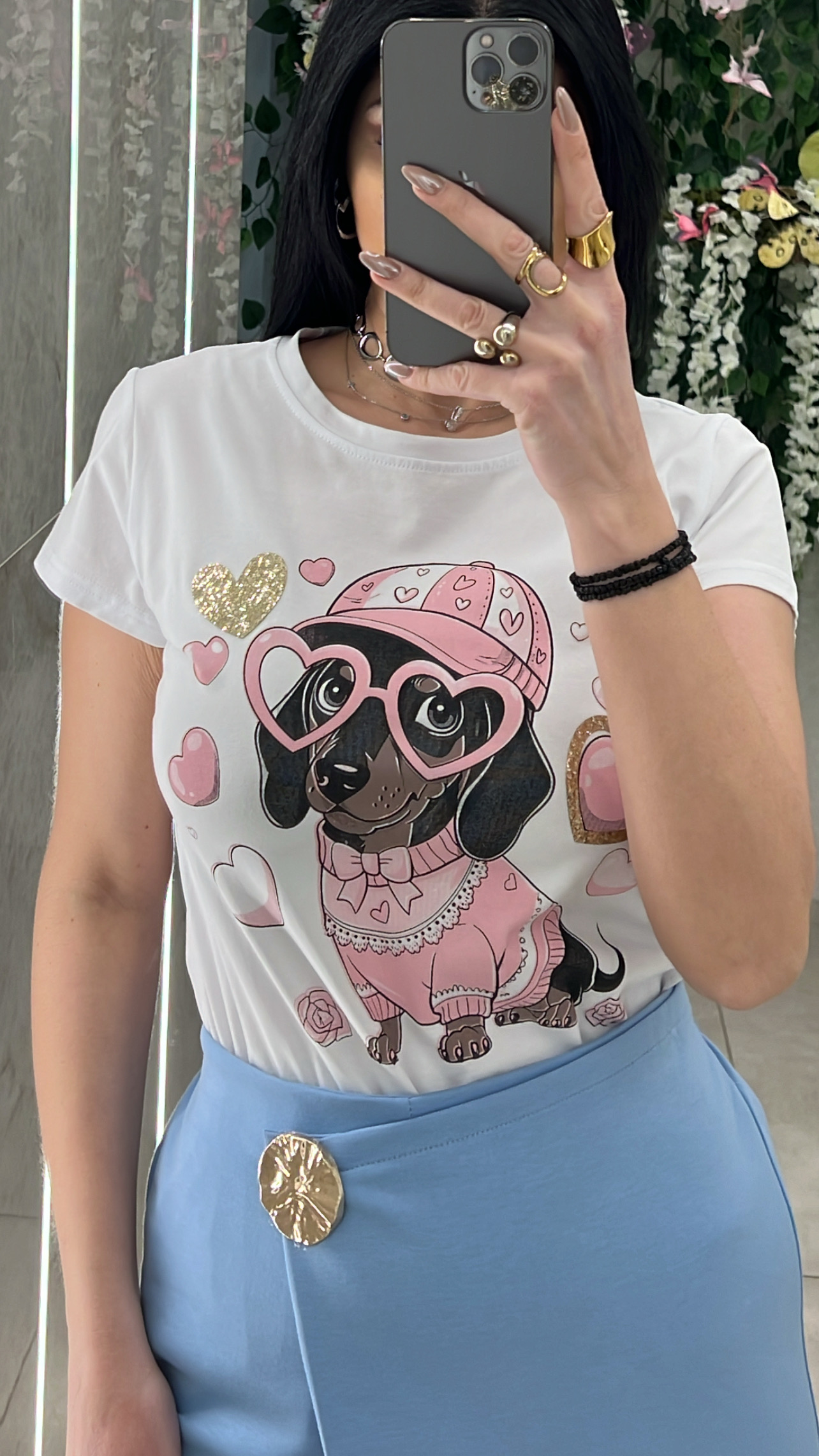 Μπλούζα κοντομάνικι λευκη  με σταμπα .