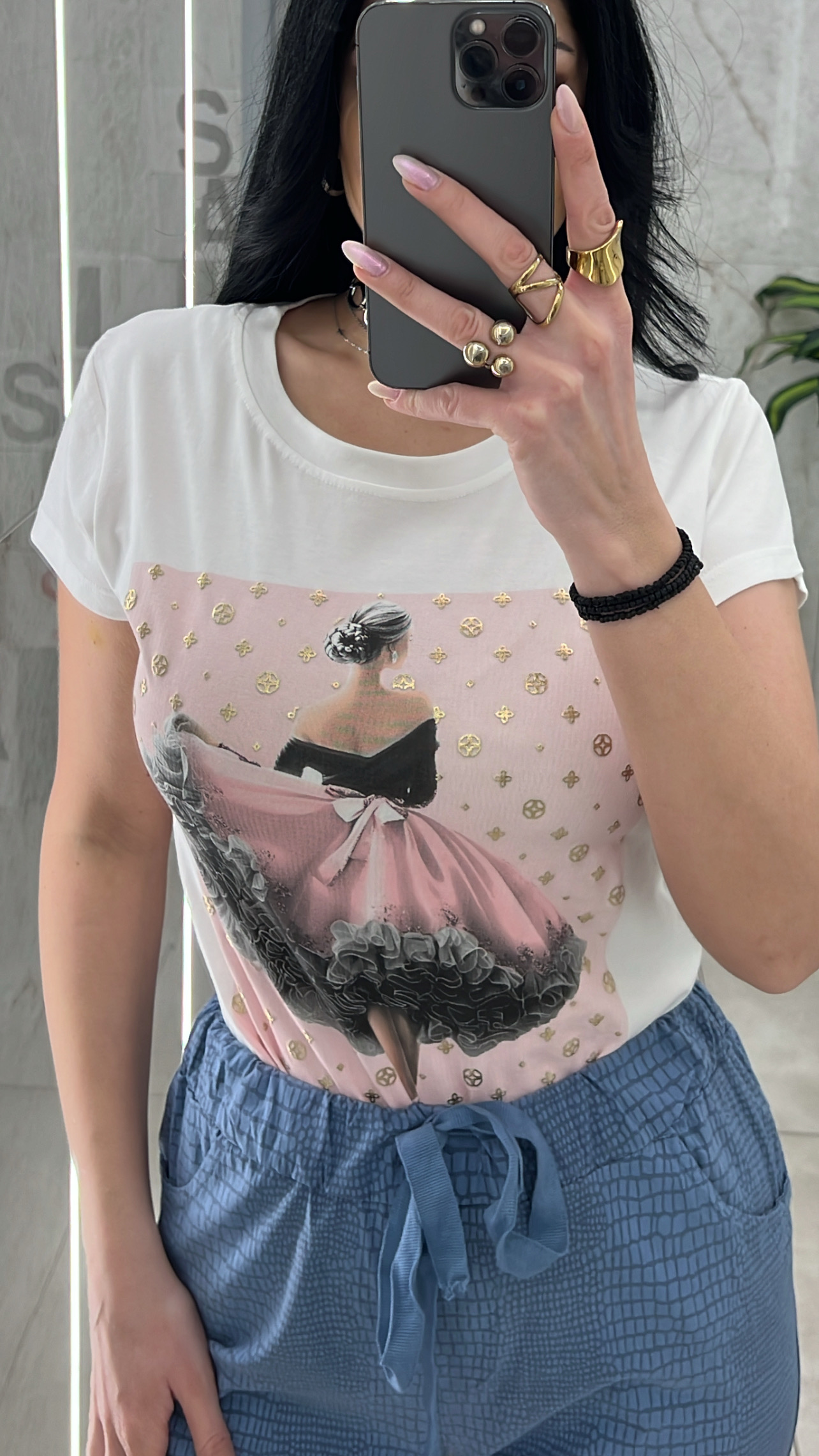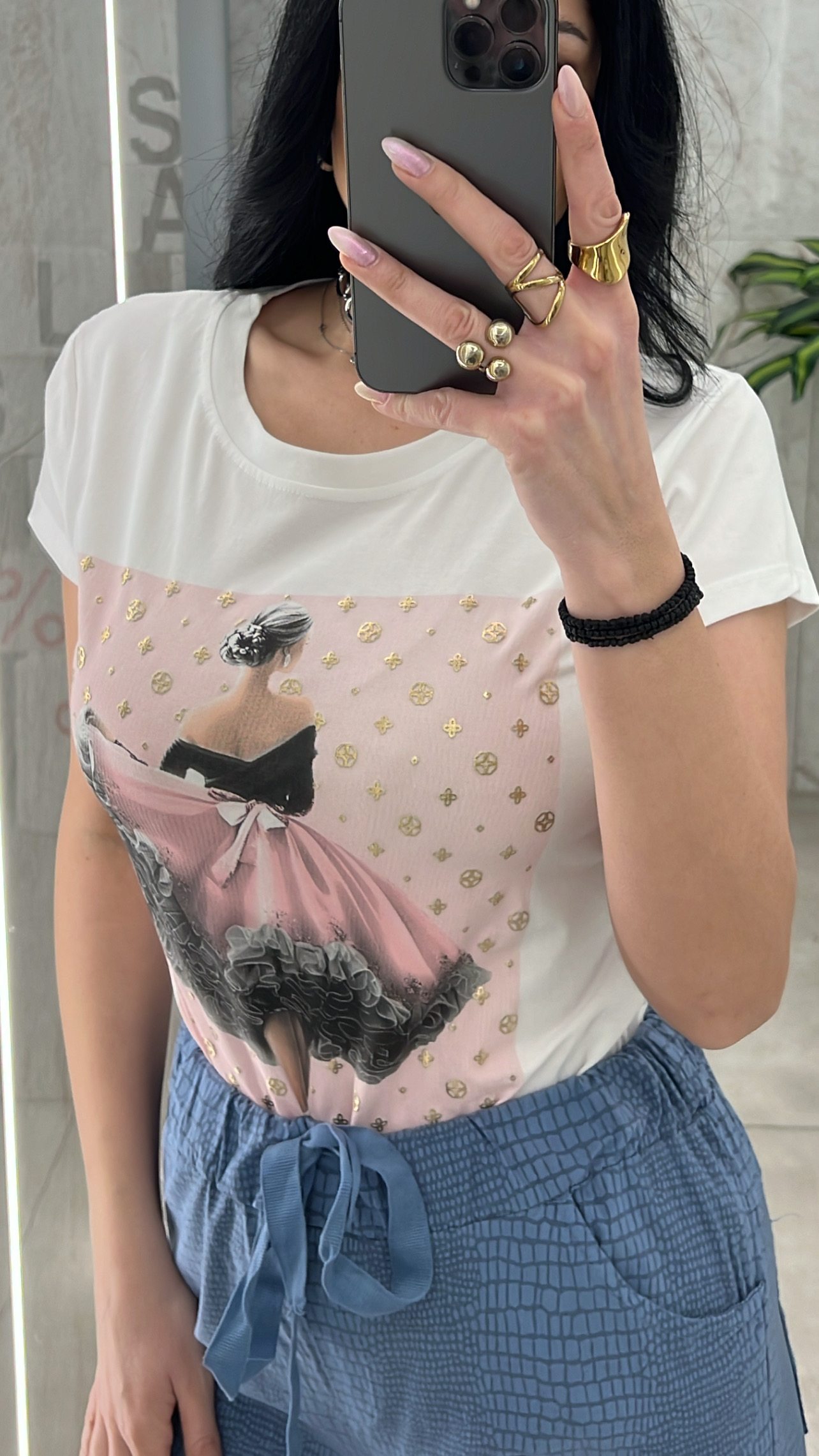 Μπλούζα κοντομάνικι με σταμπα μπαλερίνα.