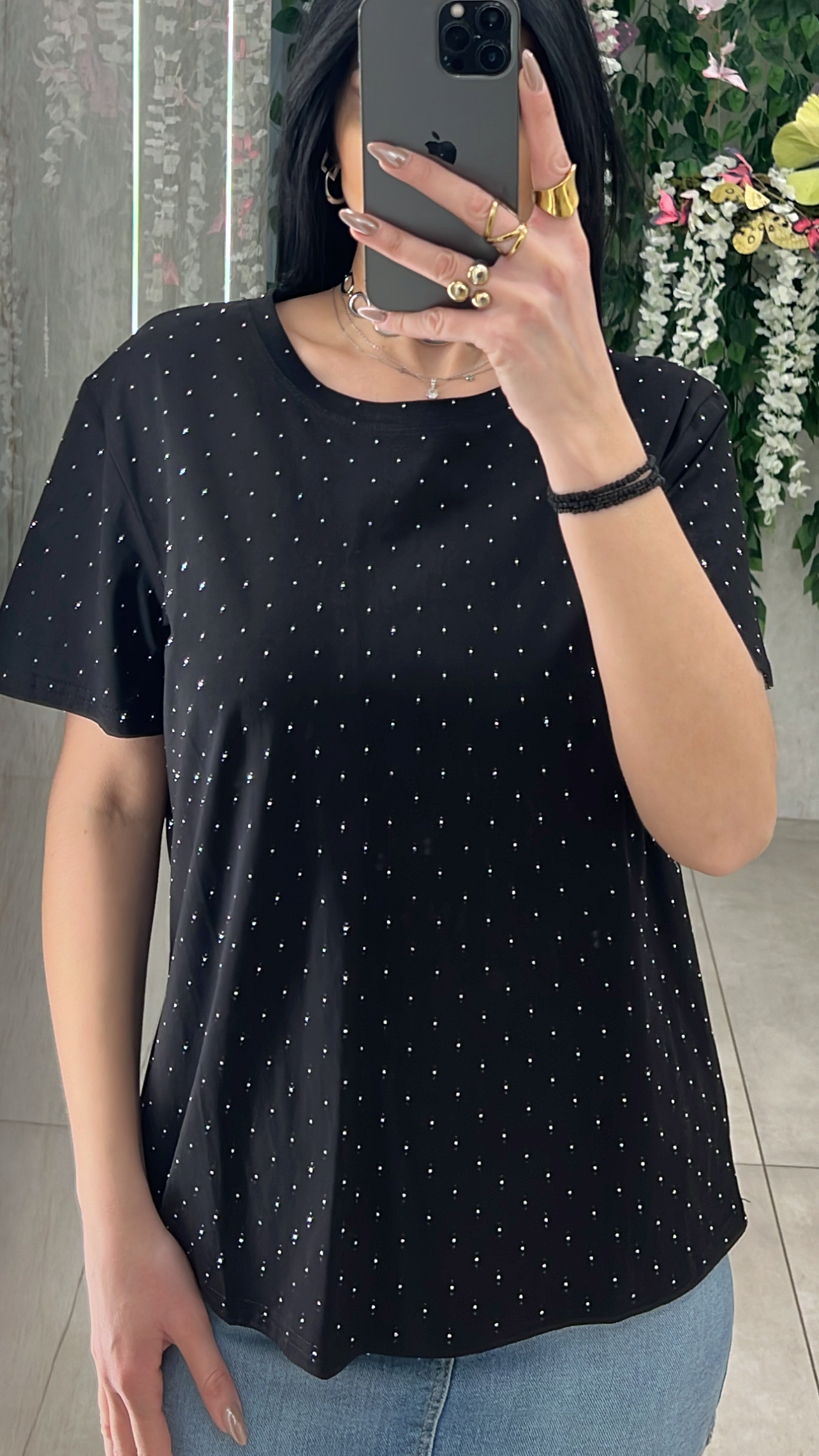 Μπλουζα Με Στρας 190321/ Μαυρο