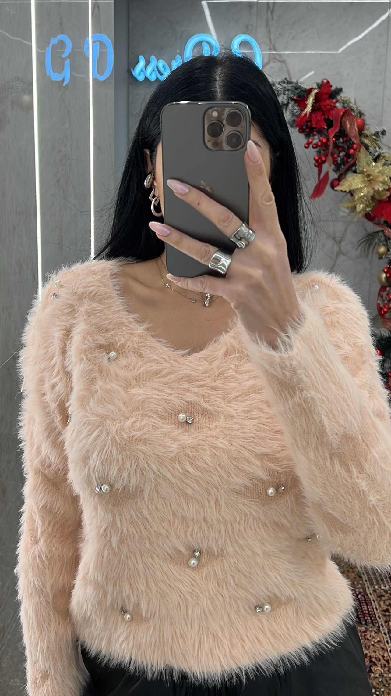 Μπλούζα μοχέρ με πέρλες 2587/ Ροζ