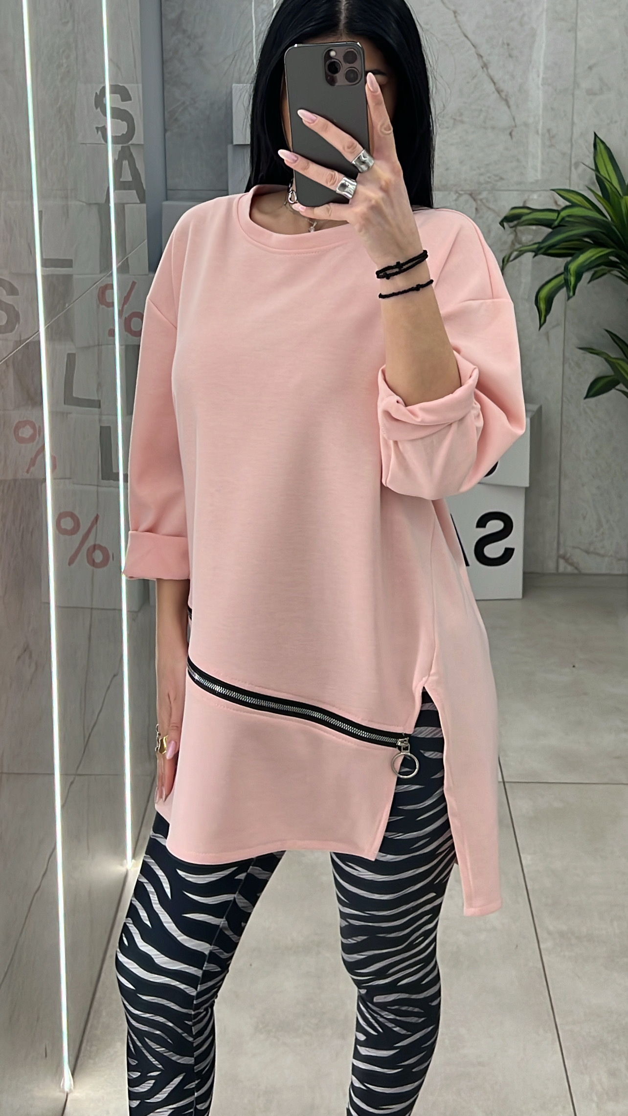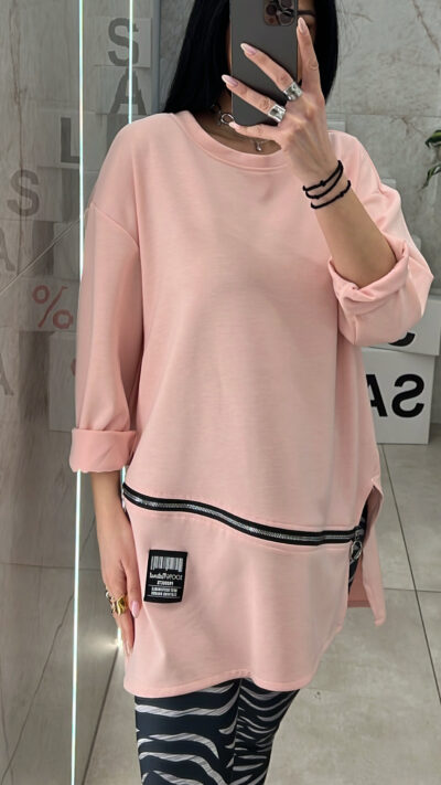 Μπλούζα oversized με σκίσιμο στο πλάι και φερμουάρ .
