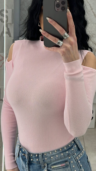 Μπλούζα πλεκτή με ανοίγματα στους ώμους 8096/Ρόζ